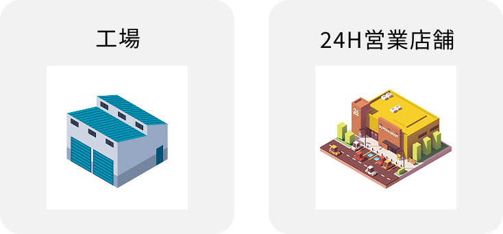工場や24時間営業のスーパーなど、昼夜問わず電気を使用する法人におすすめ!